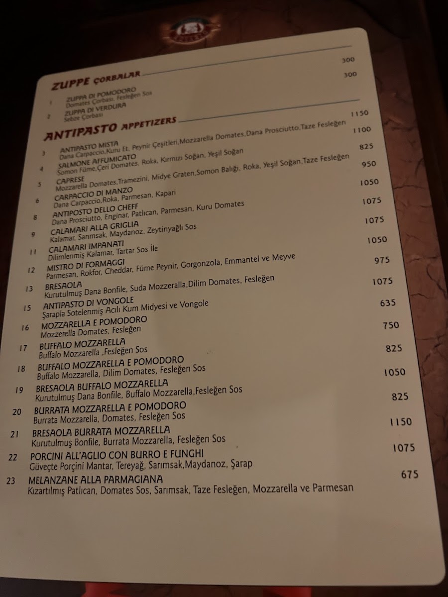 Mozzarella, Domates Sos, Dana Carpaccio, Roka , Parmesan